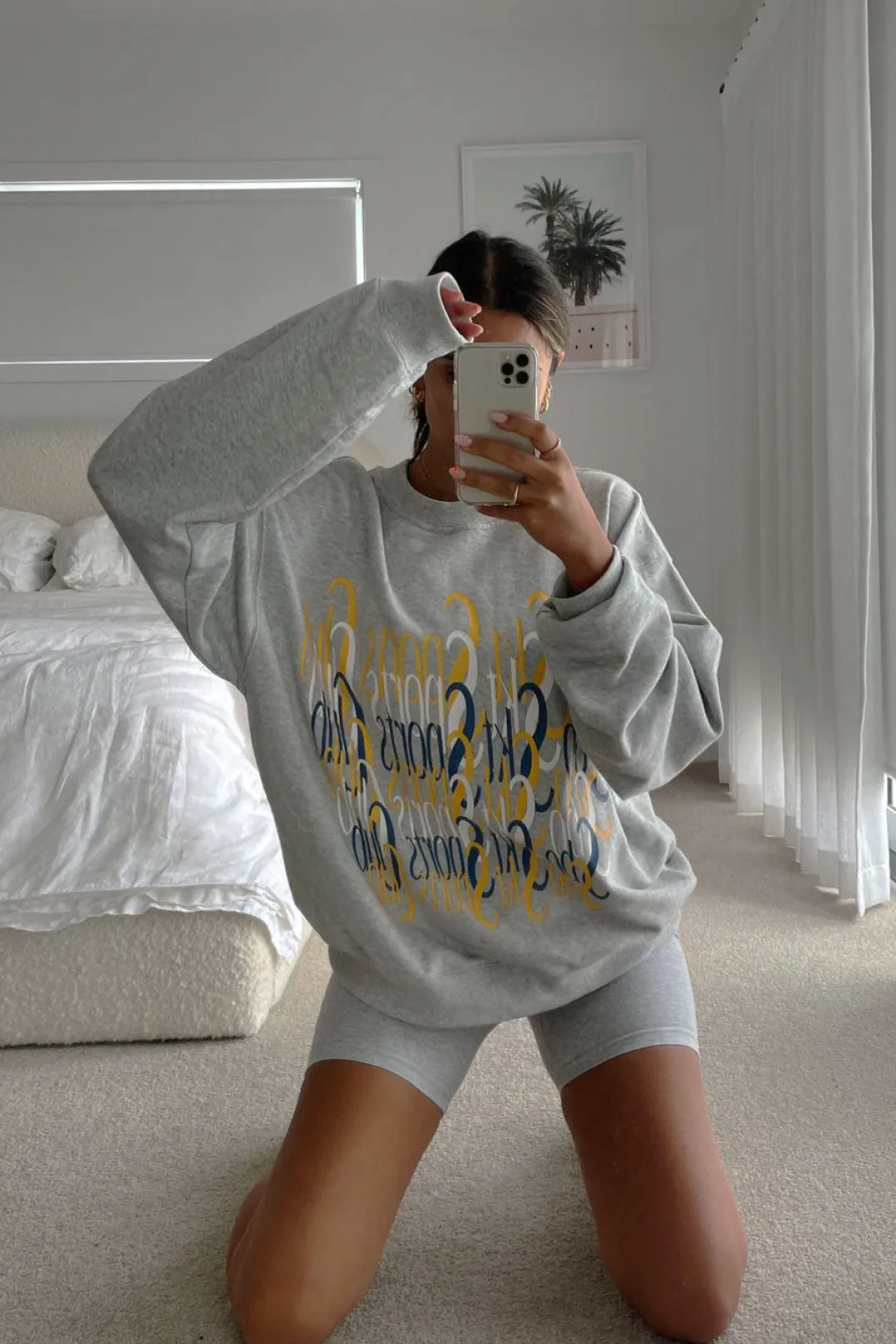 The Super Cosy Archer Sweater Is Made From A High Quality Natural Terry Back Cotton Fabric In Marl Grey. It Is An Oversized Style Featuring A High Rounded Crew Neck, Ribbed Trims And Printed Sbo Skt Sports Club Graphic Details. Just Add Bike Shorts! Designed Exclusively By Sabo.
