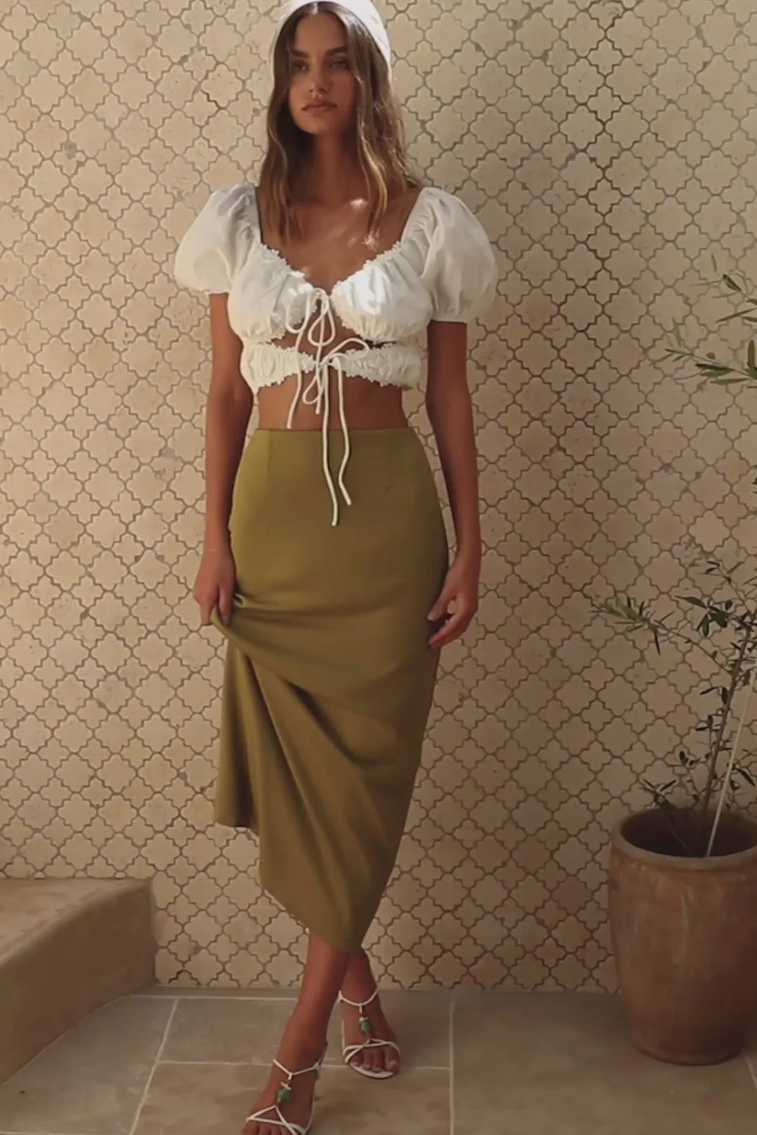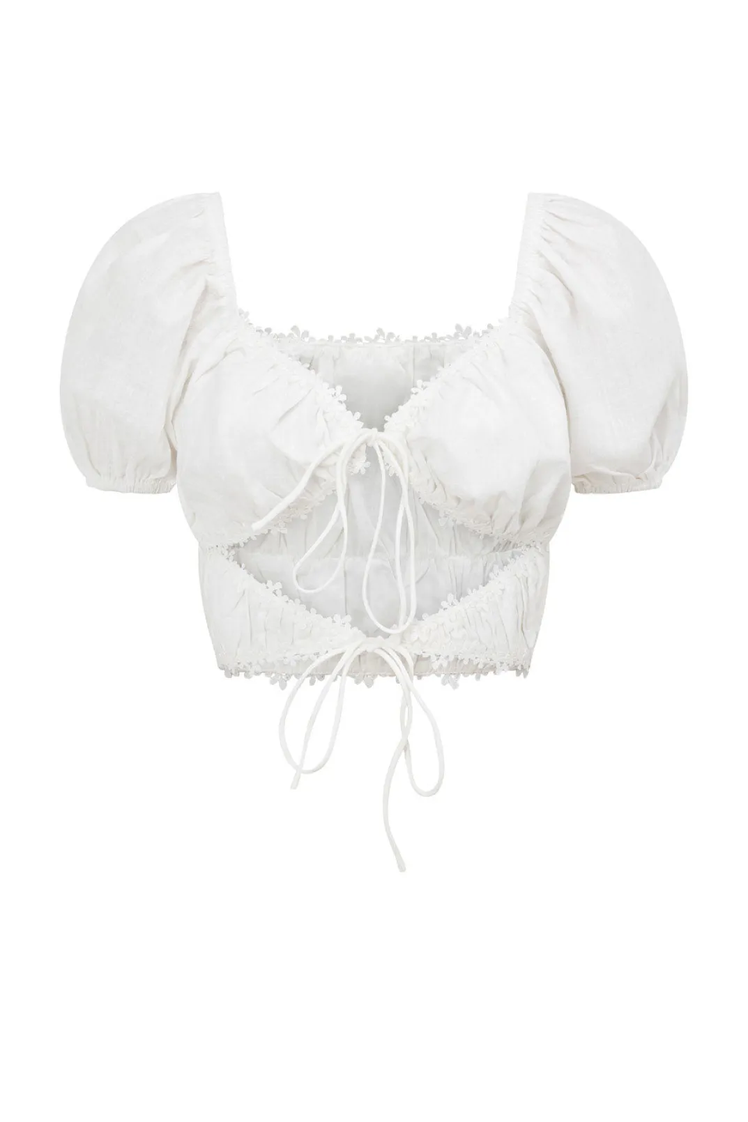 The Kate Cutout Top Is A Super Cute And Versatile Piece That Can Be Styled Dressed Up Or Down! The Kate Cutout Top Is Made From A Linen Blend Fabric And Features Short Puff Sleeves, Embroidered Flower Trim Details And Cutouts And Ties To Add A Little Something Extra! Dress It Up With The Estabar Split Skort Or Keep It Casual With Jeans! Designed Exclusively By Sabo.