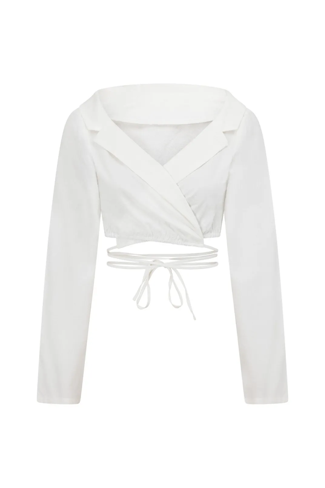 The Perfect Styling Piece! Made From A Structured Natural Cotton Fabric, The Norella Wrap Top Features Relaxed Full Length Sleeves, Cross Over Wrap At Front With Wrap Tie Detail At Waist And A Wide Neckline With Lapel Collar. Style It With A Vegan Leather Skirt Or Pair It Back With Jeans! Designed Exclusively By Sabo.